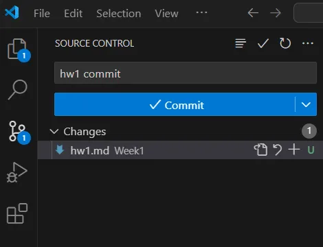 SOURCE CONTROL 창에 Commit Message를 작성한 후 Commit 버튼을 누르면 변경사항이 저장돼요.