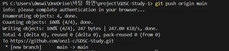 git push origin main 명령어를 통해 commit한 내용을 push하시면 돼요!