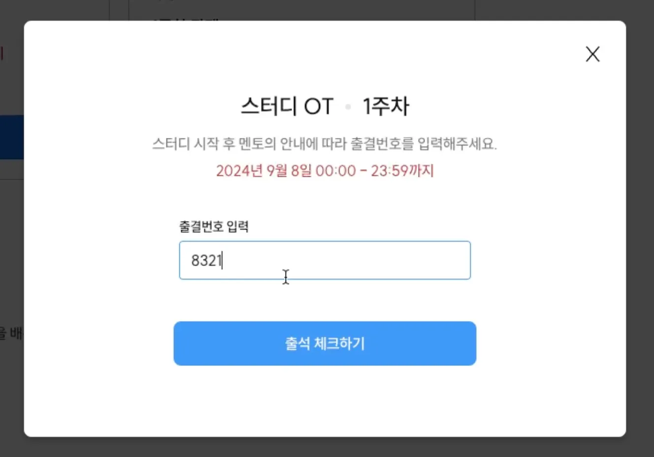 멘토님이 알려주시는 번호를 입력하시면 출석이 확인돼요!