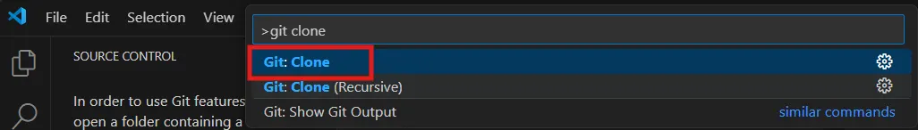 [ F1 ]을 눌러 명령 팔레트를 열고 git clone을 검색하여 선택해 주세요.
