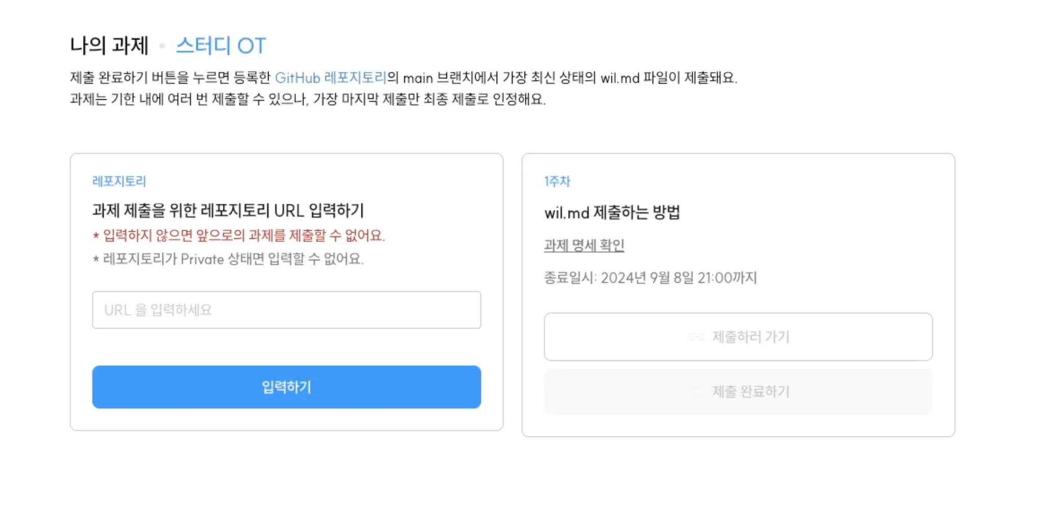 url은 최초 과제 제출 전까지만 수정이 가능해요.