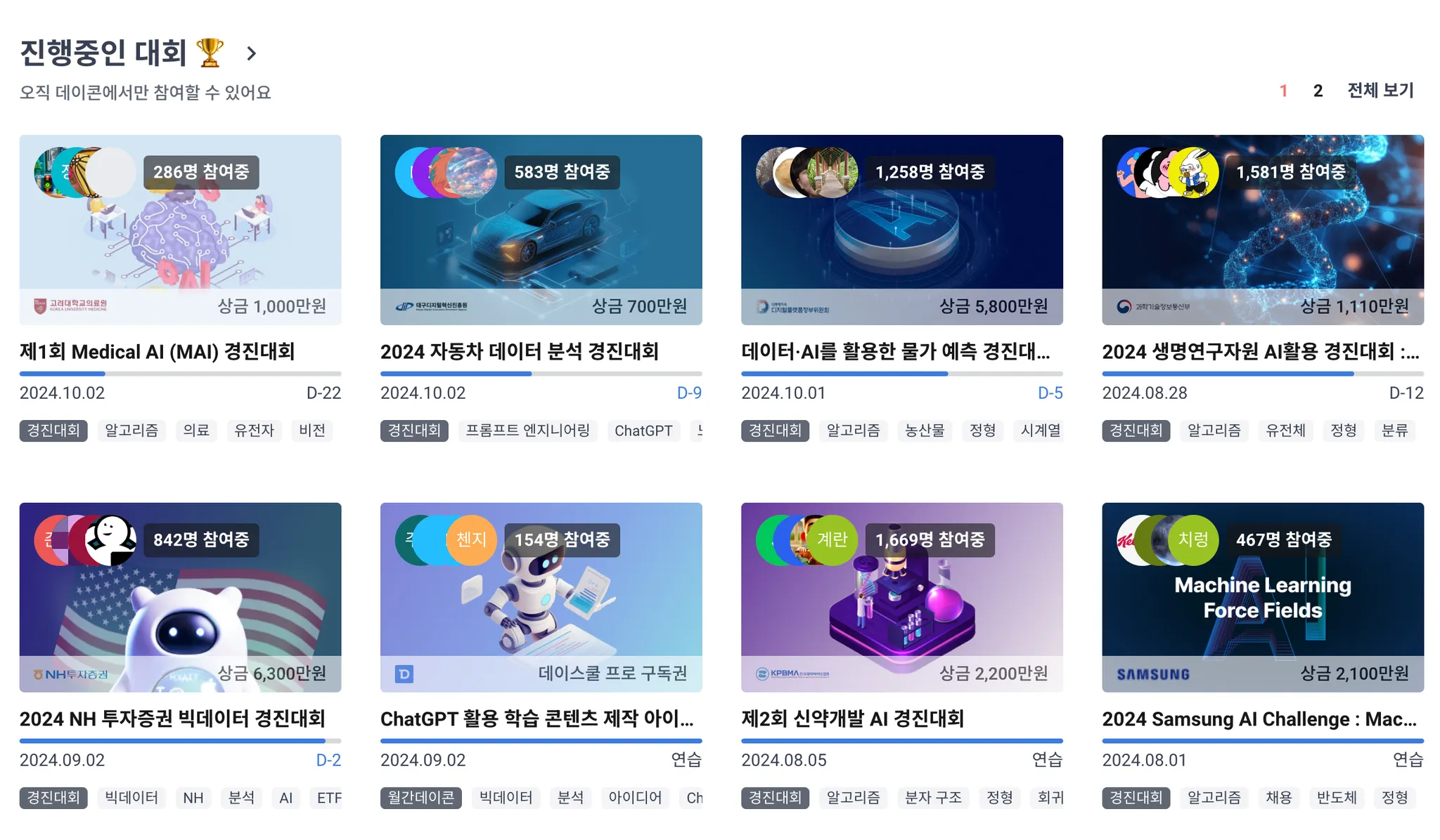Kaggle이 세계적인 ML/AI 경진 플랫폼이라면 우리나라에는 데이콘이 있습니다
