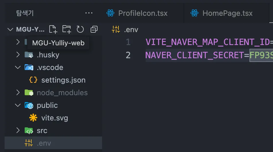 끌어다 쓸 때에는 import.meta.env. 에 이어서 사용해야합니다.