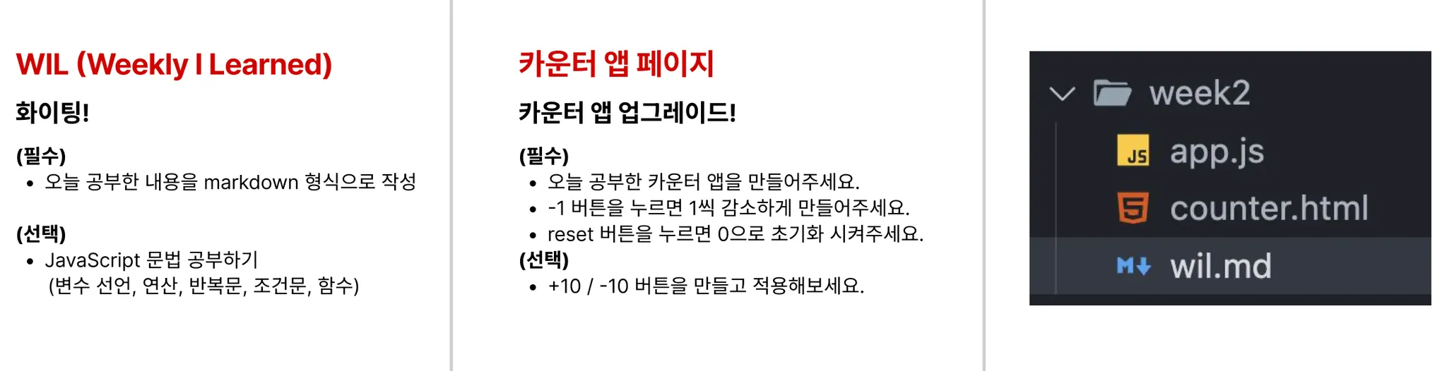 자신의 레포지토리에 weekn 폴더를 생성해 wil.md 파일을 제출합니다.