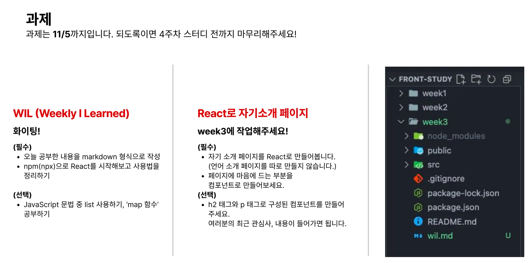 자신의 레포지토리에 weekn 폴더를 생성해 wil.md 파일을 제출합니다.