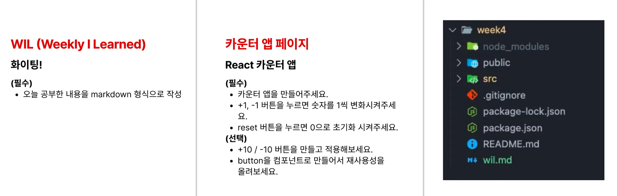 자신의 레포지토리에 weekn 폴더를 생성해 wil.md 파일을 제출합니다.