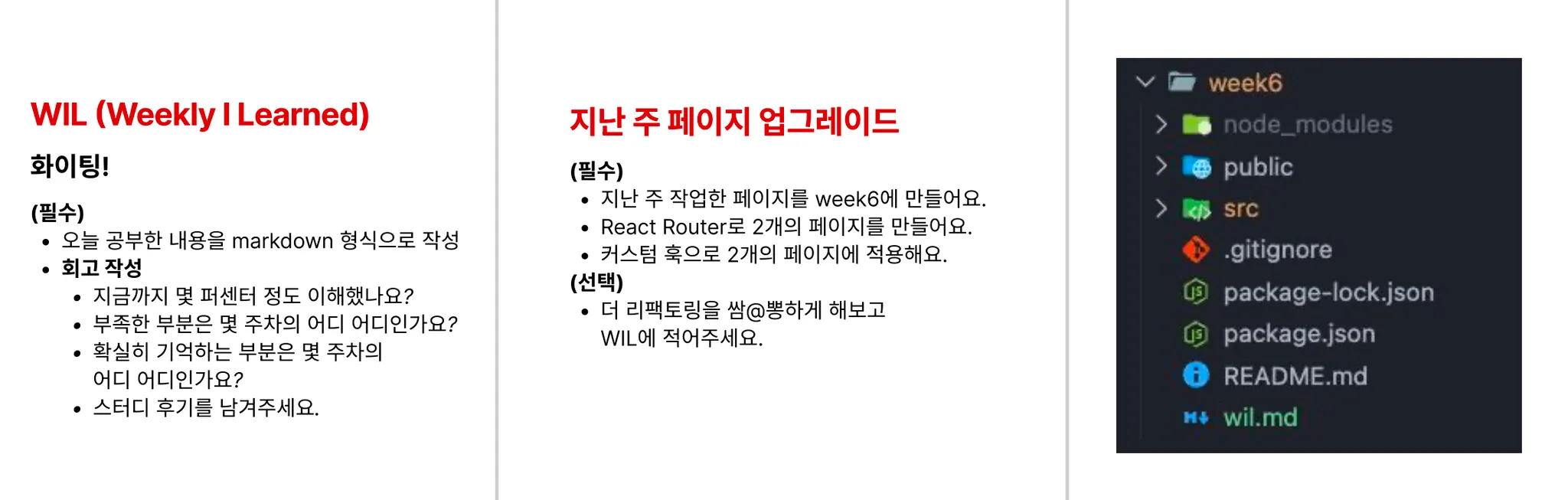 자신의 레포지토리에 weekn 폴더를 생성해 wil.md 파일을 제출합니다.