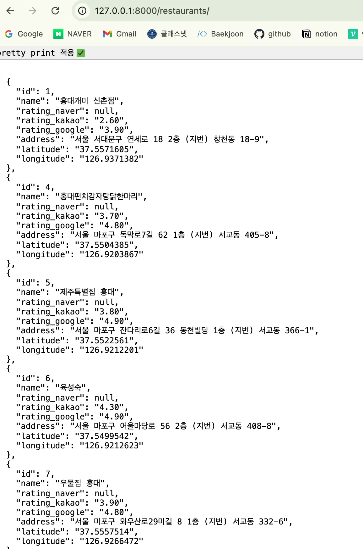 데이터 json으로 보내기 (맛집 리스트 GET 요청 시)