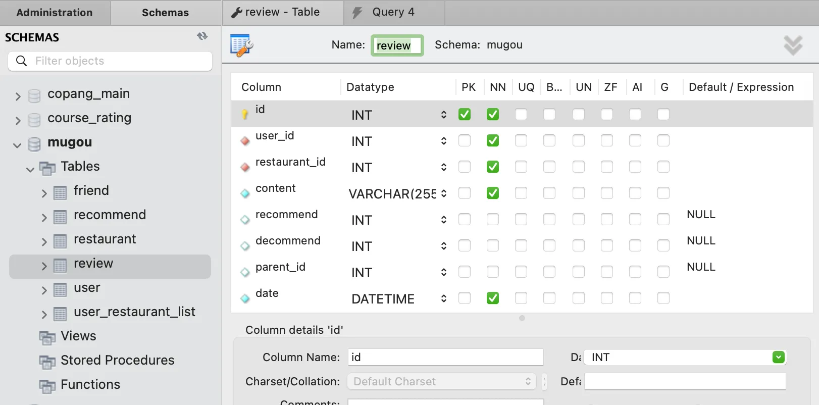 → 마이그레이션 하니까 아래 모델 작성한걸로 MySQL에 자동으로 테이블 만들어줘서 만들어준걸로 다시 적용해놨어요