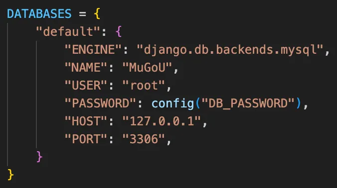 mustgou/settings.py 의 DATABASES에 MySQL 디비로 연결