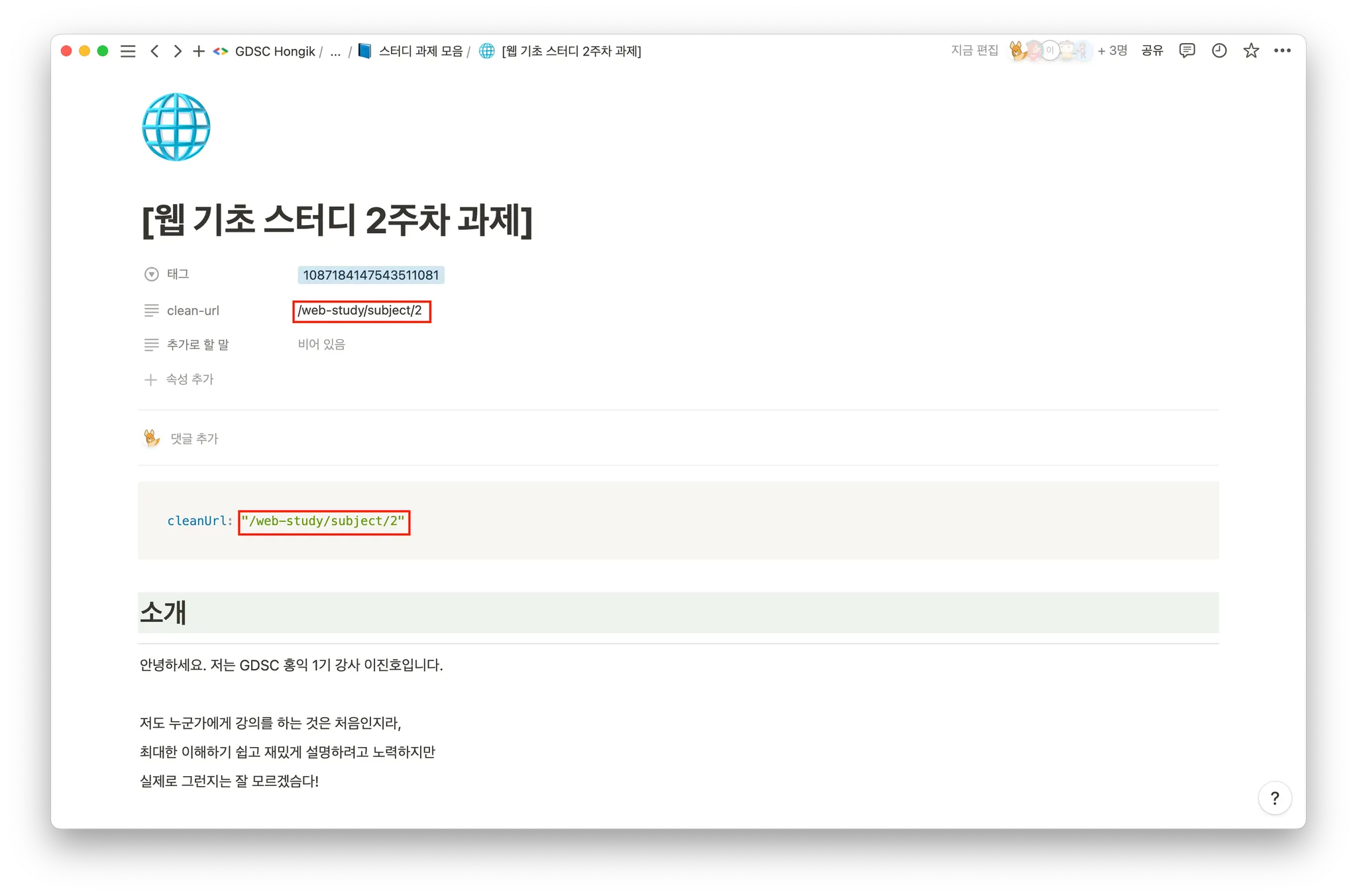 페이지의 내용 맨 윗부분에 아래와 같은 형식의 cleanUrl 코드 블럭이 있습니다.