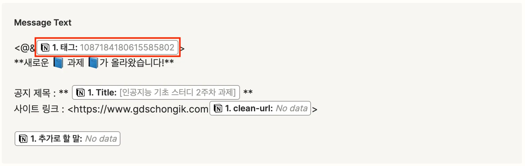 태그의 텍스트는 멤버들을 역할로 멘션하게 도와주는 역할ID입니다.