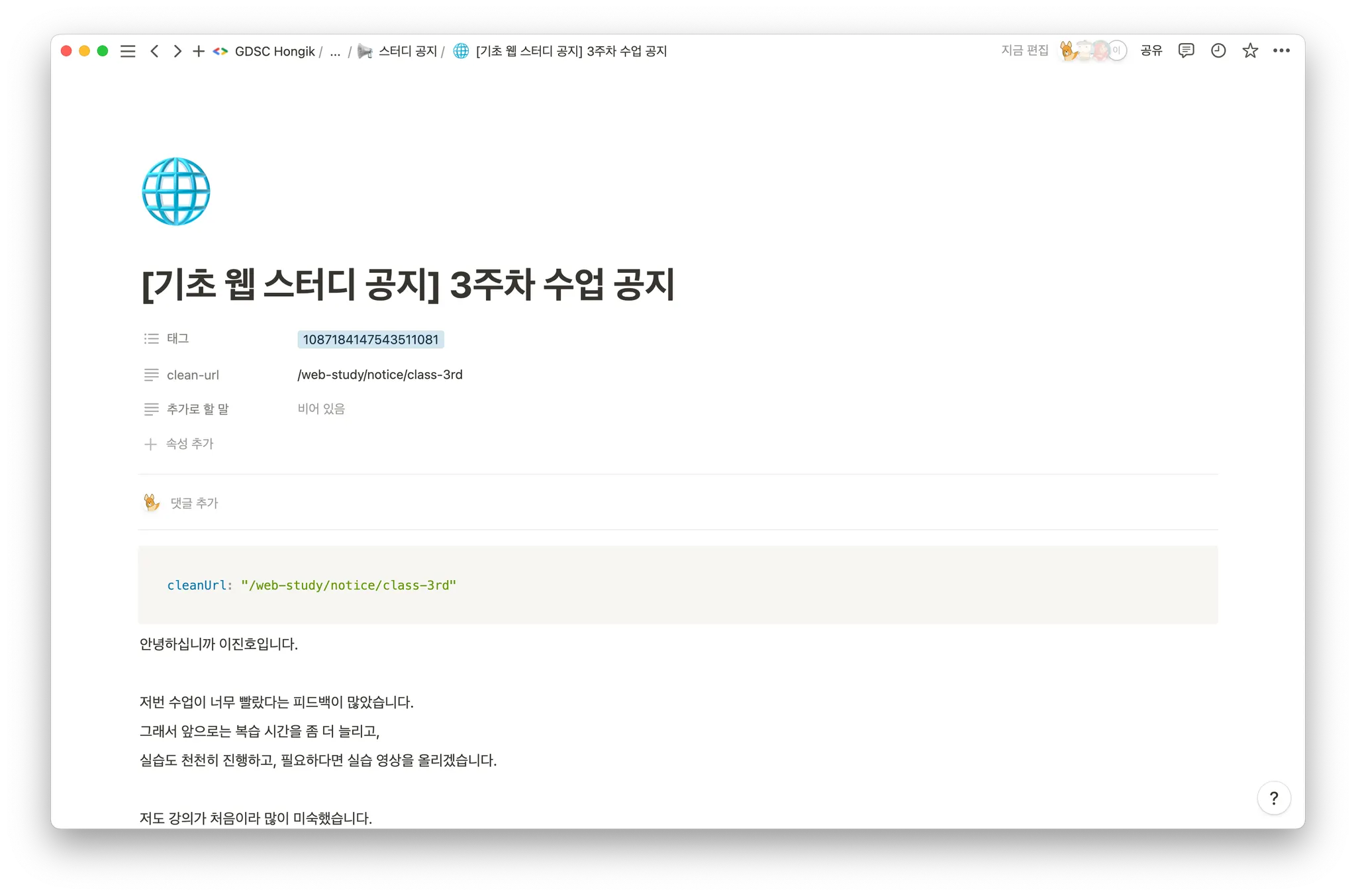 조금 번거롭겠지만, 웹사이트로 공지되기 때문에 스터디원들의 혼란을 야기하지 않게 부탁드립니다.