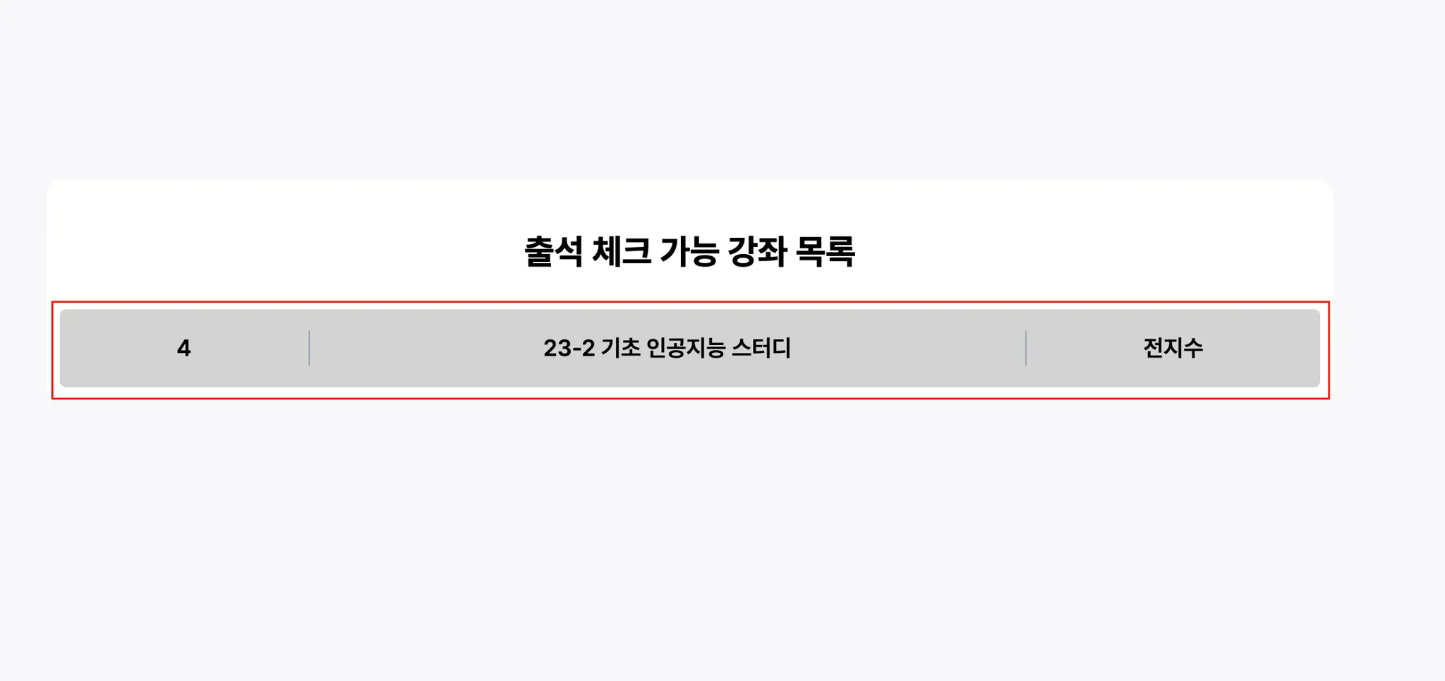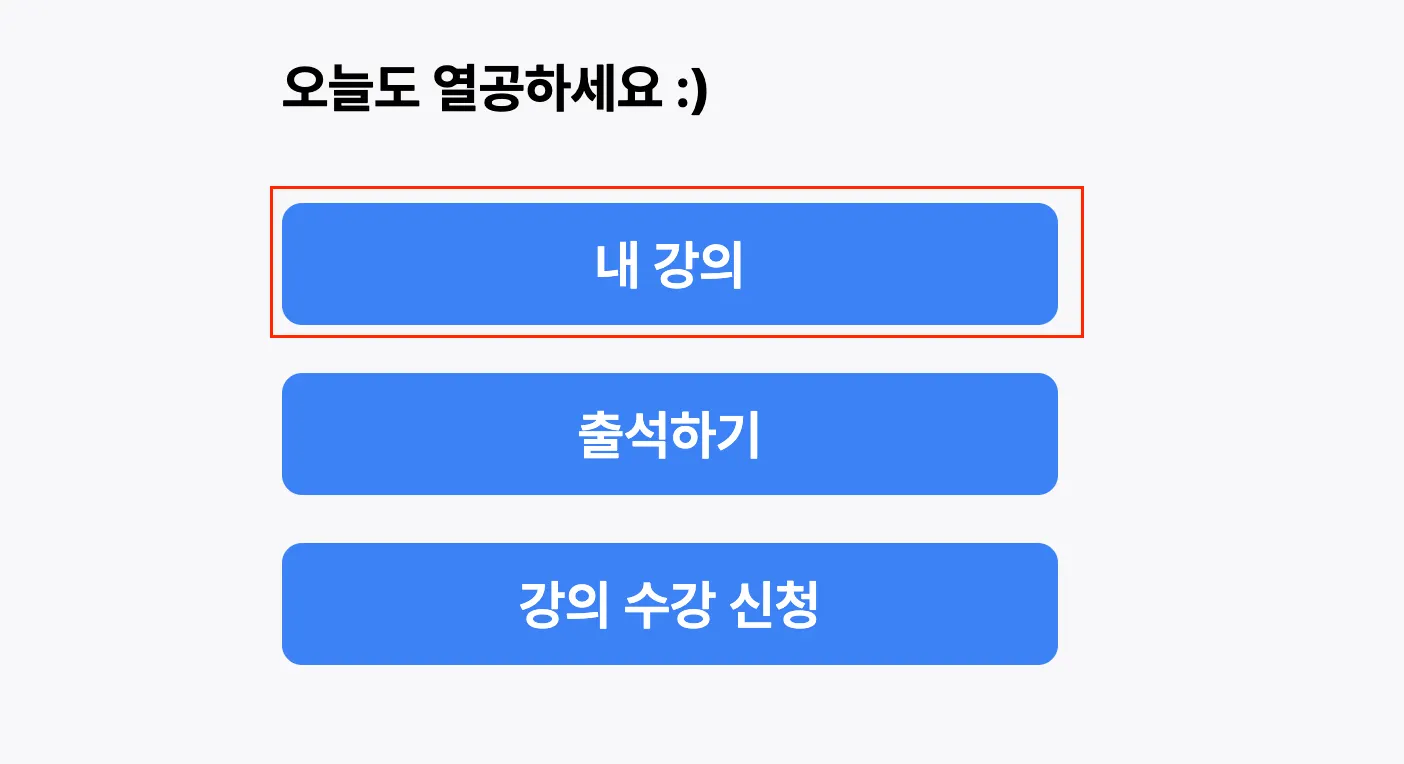 수강 신청 승인이 완료된 상태에서만 출석을 할 수 있어요. 출석하기 버튼을 누르고, 수강중인 강의를 클릭해주세요.