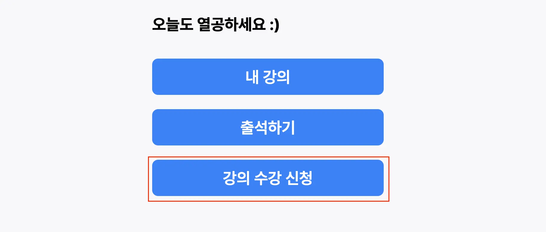 로그인 후, 메인화면의 강의 수강 신청 버튼을 눌러주세요.