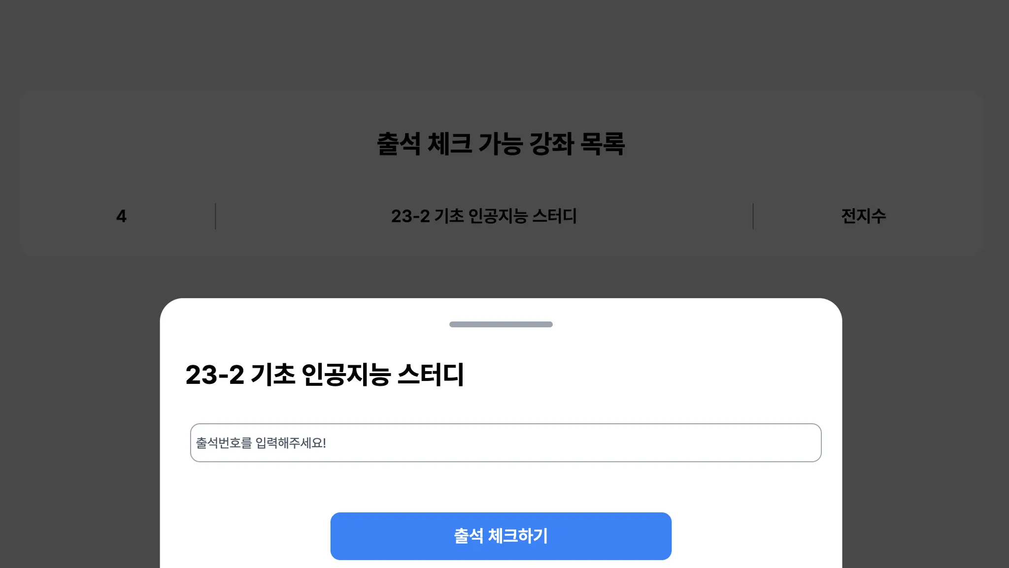 멘토님이 알려주시는 수강 출석 번호를 입력해주세요.