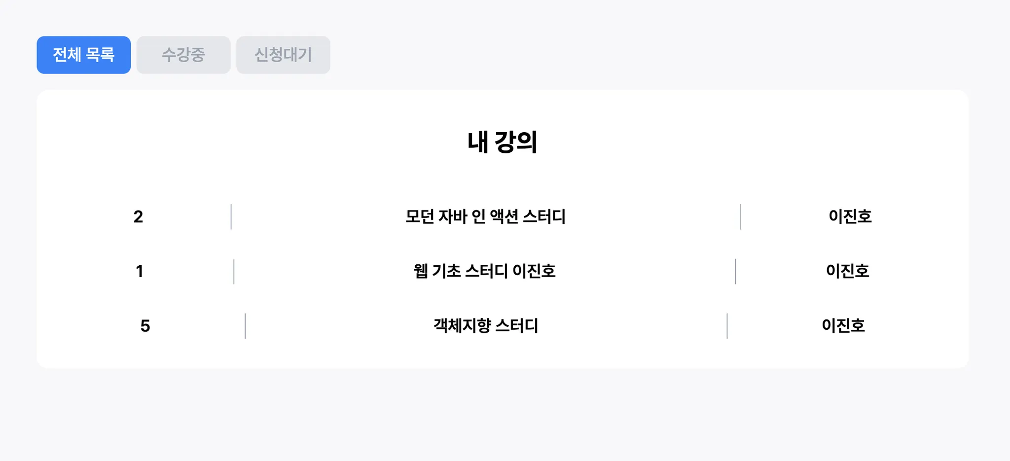 수강신청을 하면, 강사님이 수강신청 승인을 해야만 내 강의에서 확인할 수 있어요.