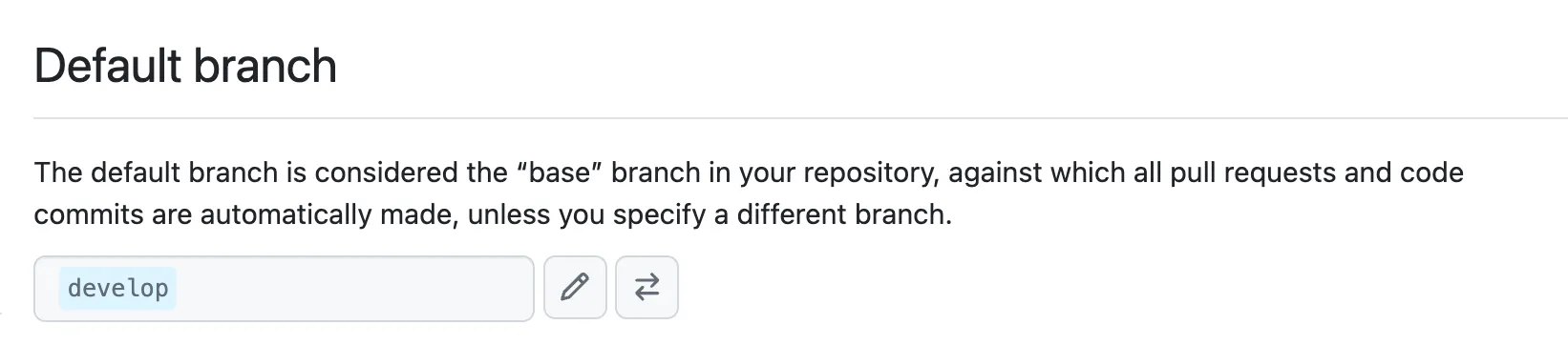 Default 브랜치는 develop으로 바꿔줍시다. 나중에 좀 체계가 생기면 main을 얹어봅시다.