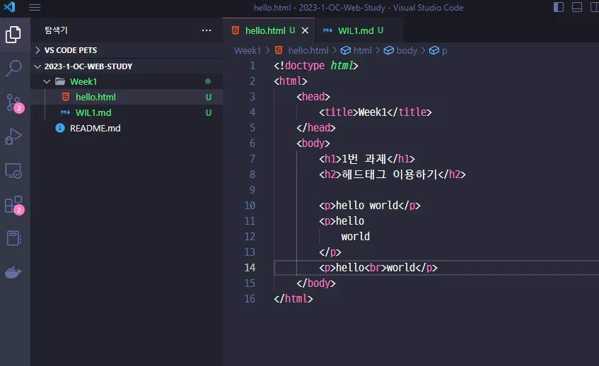 자, 그럼 Week1 폴더 안에서 해당 주차에 부여된 과제를 수행해 주세요.