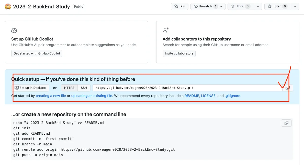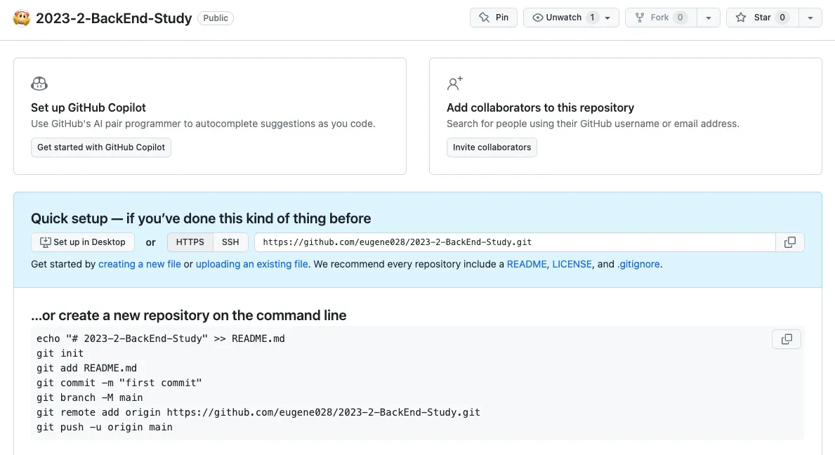 https://github.com/깃허브 아이디/2023-2-BackEnd-Study.git