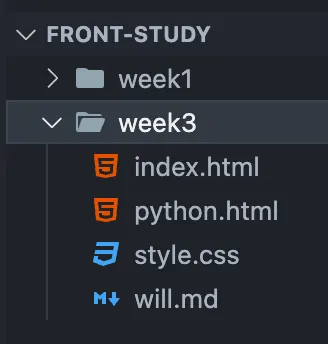 여러분이 작성한 자기소개 페이지, 언어 소개 페이지를 week3 폴더에 복사 붙혀넣기를 해주세요.