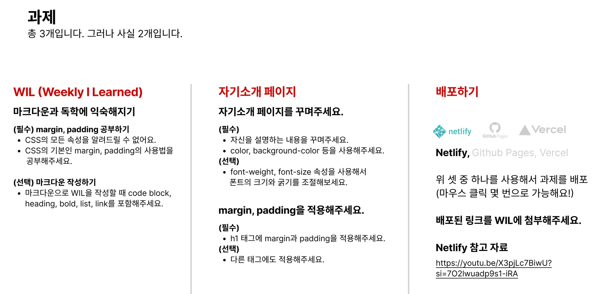 이번 3주차 과제는 자기소개 페이지와 언어소개 페이지를 CSS로 꾸미기입니다. 1주차 과제였던 자기소개할 페이지와 언어 소개 페이지가 없을겁니다.