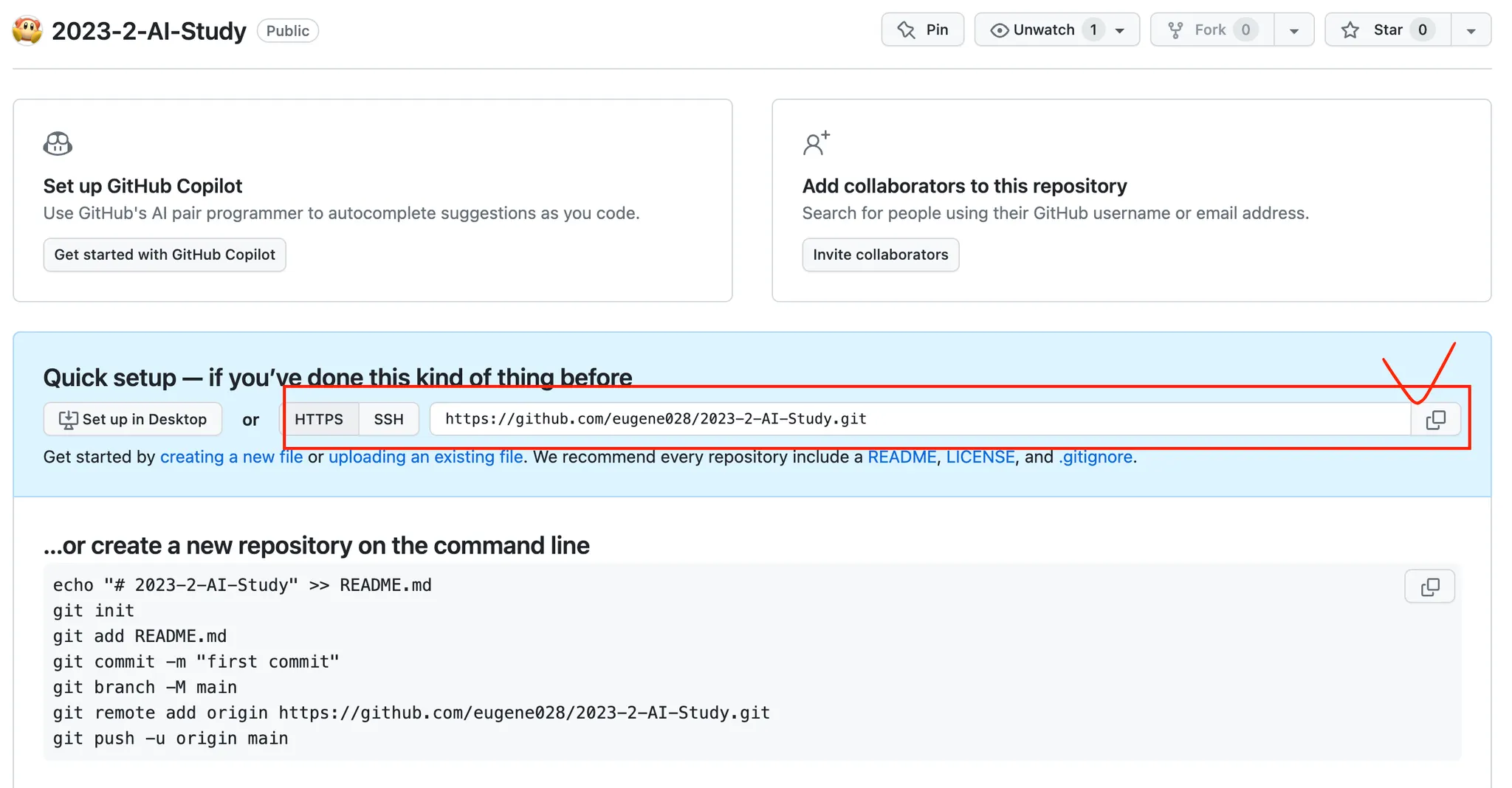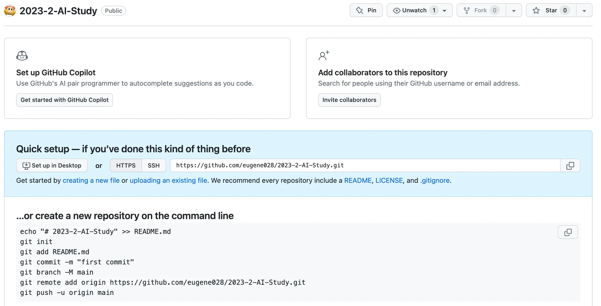 https://github.com/깃허브 아이디/2023-2-AI-Study.git
