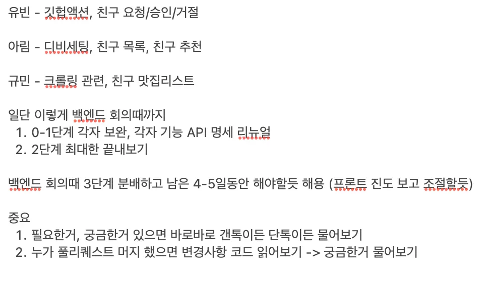 API 명세 리뉴얼 바로바로 해주기 (리뉴얼 하다 보면 놓쳤던 것들이 많이 보이더라구요) 프로토타입이랑 비교해서