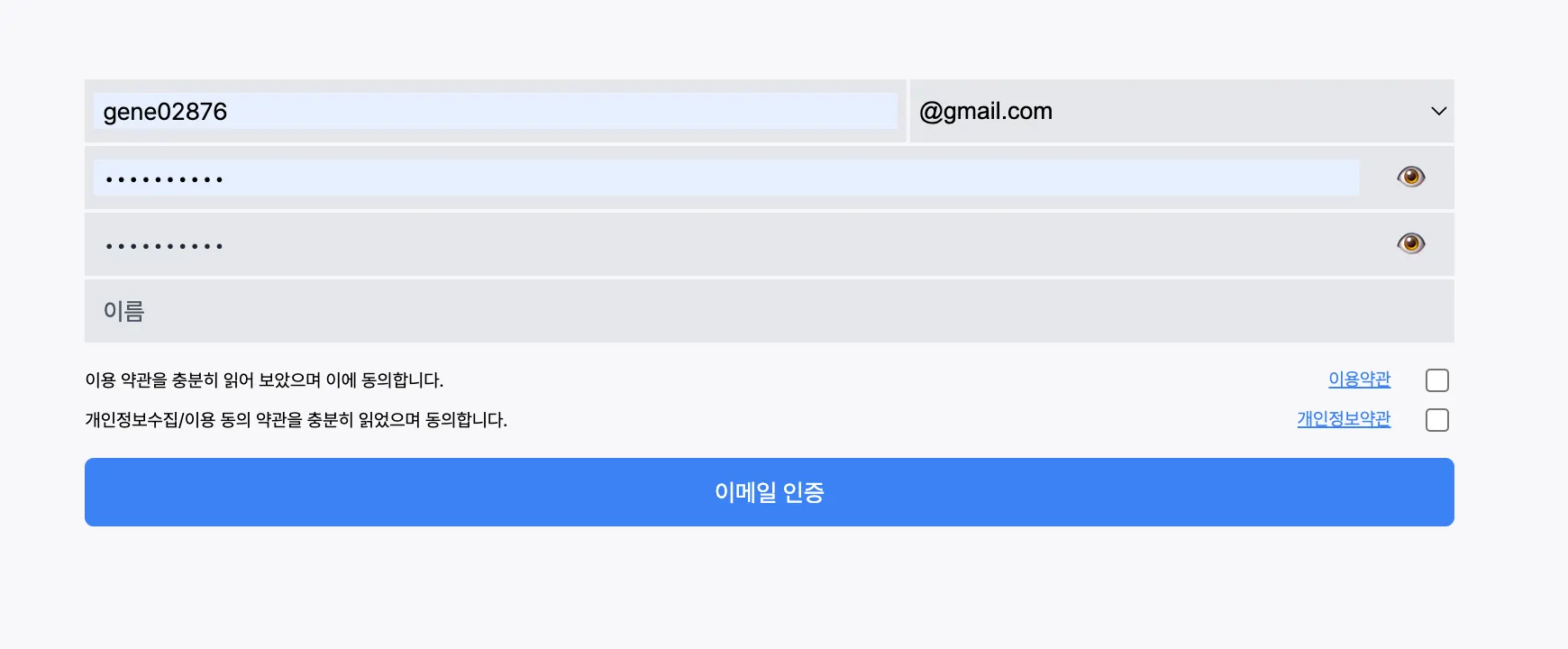 메일로 온 회원가입 인증 코드를 입력하면 회원가입이 완료됩니다.