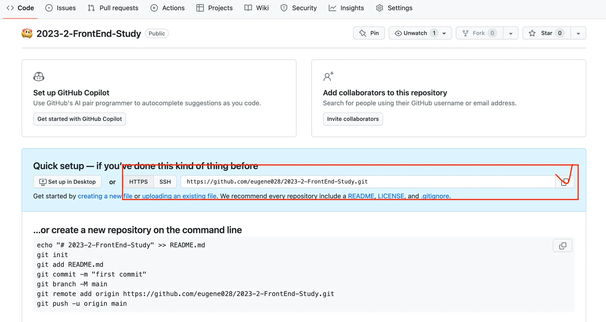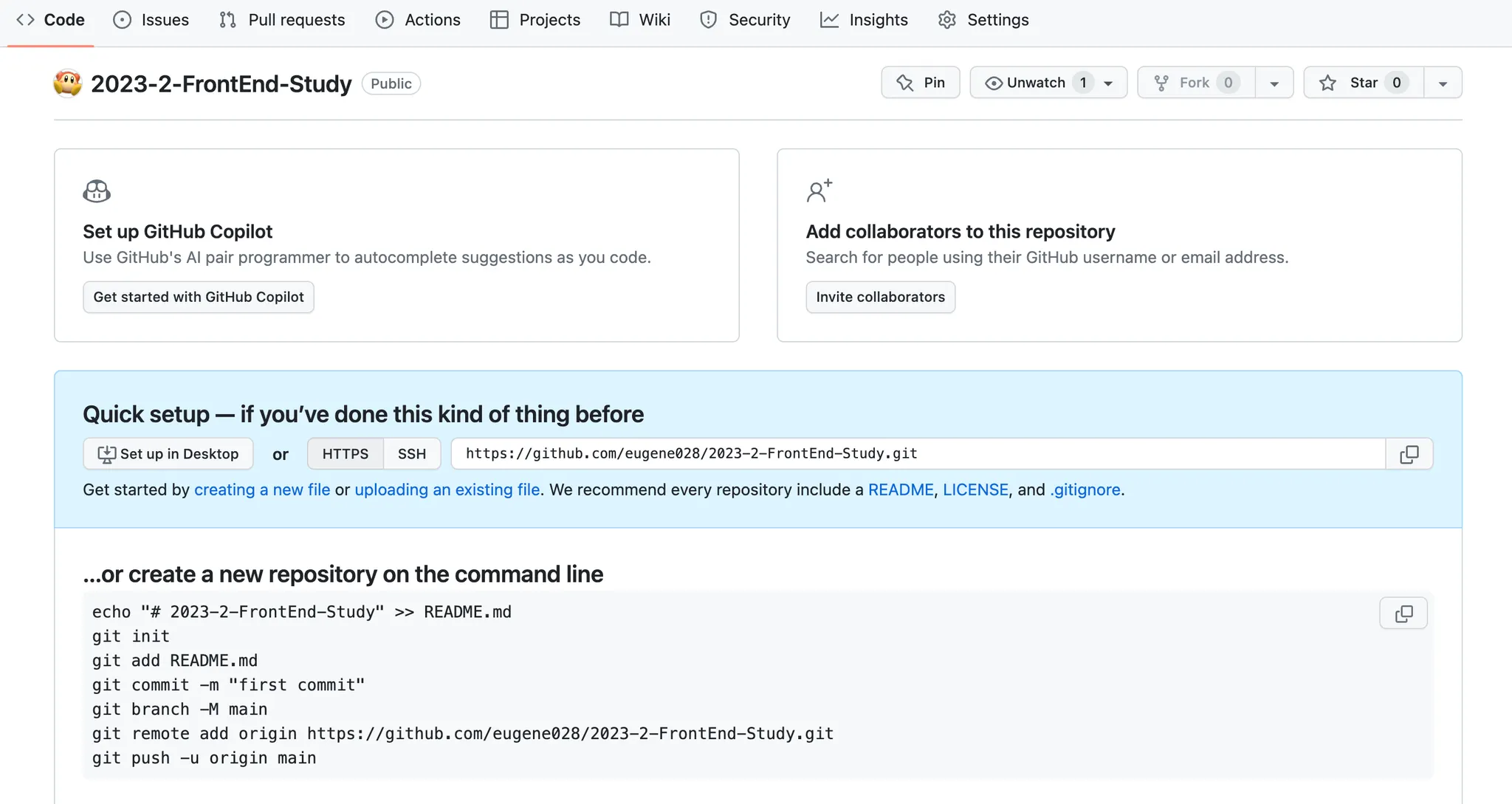 https://github.com/깃허브 아이디/2023-2-FrontEnd-Study.git