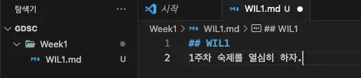 1주차 과제의 WIL을 제출해볼게요. 먼저 과제를 열심히 GDSC라는 폴더 안에 수행합니다!