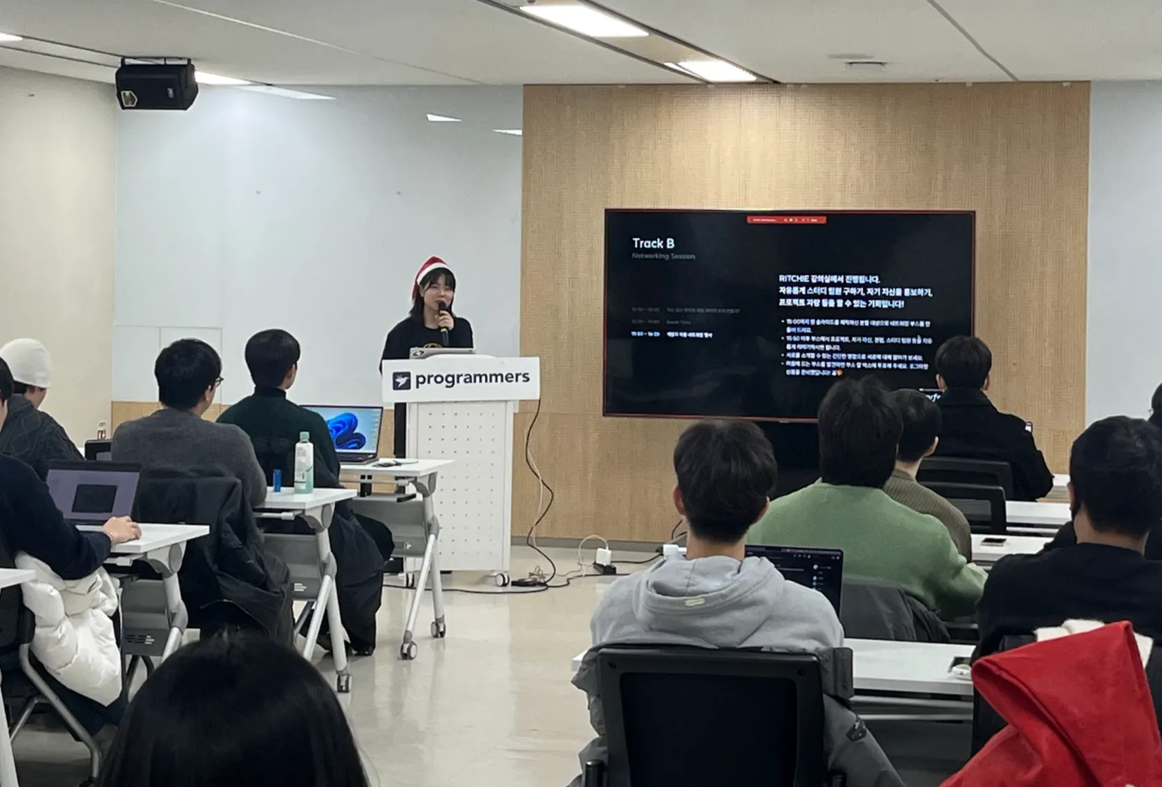 1년을 마무리하며 개발자라는 직종에 도전하는 학생들끼리 회고하고, 많은 사람들과 교류하며 친목을 다지는 행사였어요.