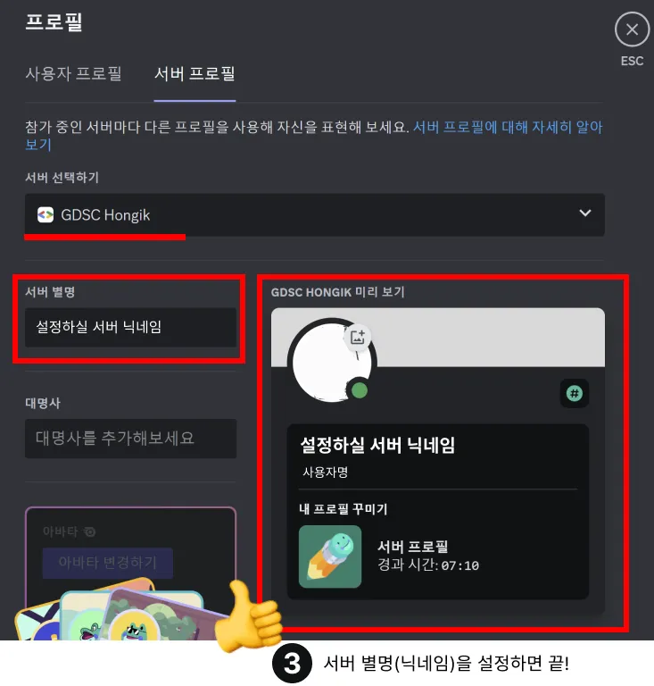 위와 마찬가지로, 서버 별명(닉네임)을 설정하면 끝!