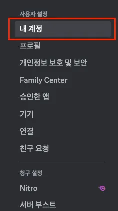 설정 목록 중, 내 계정 설정을 클릭해주세요!