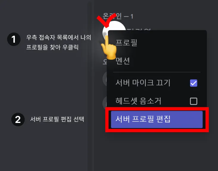 우클릭 후 나온 선택창에서 서버 프로필 편집을 눌러줍니다!