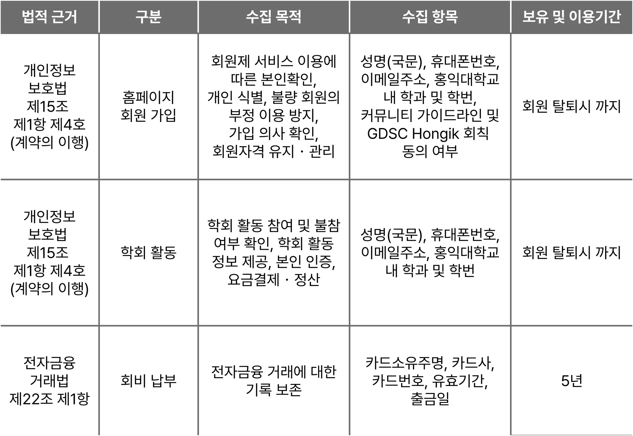 정보주체로부터 동의받은 개인정보 보유기간이 경과하거나 처리목적이 달성되었음에도 불구하고 다른 법령에 따라 개인정보를 계속 보존하여야 하는 경우에는, 해당 개인정보를 https://www.notion.so/gdsc-client-2563bf79d94940e4af4cdd3fb72124e6?pvs=4별도의 데이터베이스(DB)로 옮기거나 보관장소를 달리하여 보존합니다.
